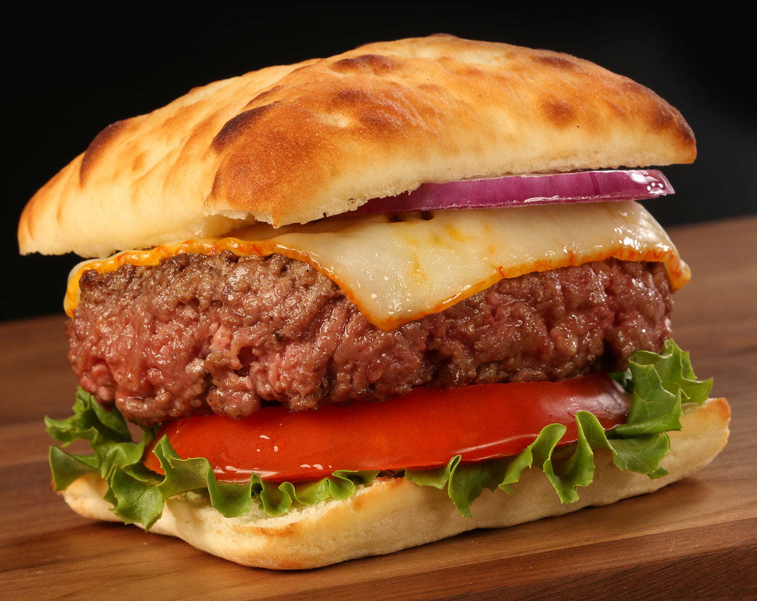 1. Divide ground beef and form into 4 burger patties. Season with salt and pepper and cook (grill, fry or broil) until desired doneness. During last minute of cooking top with sliced cheese.