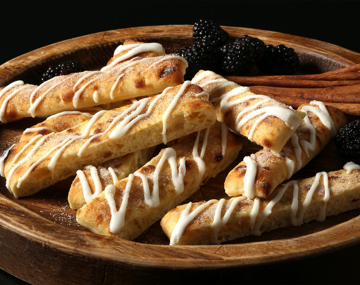 6. Drizzle each breadstick with white icing. Serve.