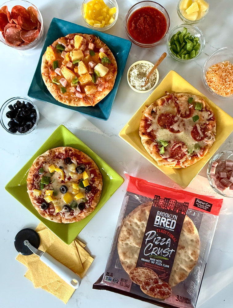 1 9.3-ounce package Brooklyn Bred 7-inch Traditional Pizza Crusts (3 personal-size crusts) *
